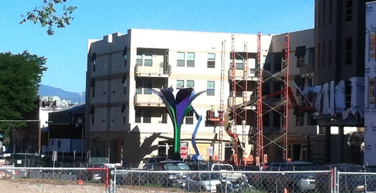 The biggest reason for an obvious increase in interest with Lincoln Park lately is the incredible transformation of the 3 city blocks surrounding our light rail station at 10th & Osage. The raising of the flower sculpture this week (a creation of a local artist and pictured above) marks a milestone towards completion of Phase II.