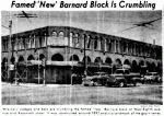 The last article I found on the building marks it’s destruction in 1951, and offers a lot more unexpected color to the outlines of this story. The article’s headline reads, “Barnard Block, Home to Gay ’90’s Socialites, Falls to Parking Lot.”