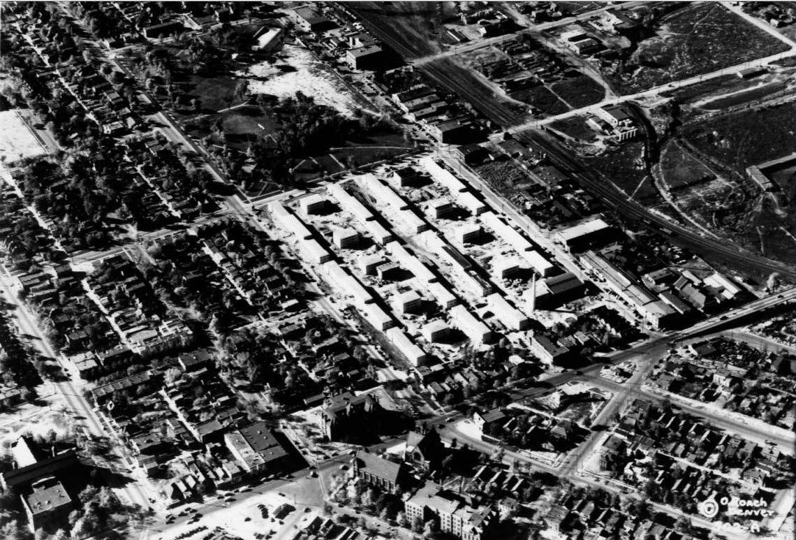 Aerial photograph of the Lincoln Park Project. Including surrounding residential areas.undated. History Colorado Collection