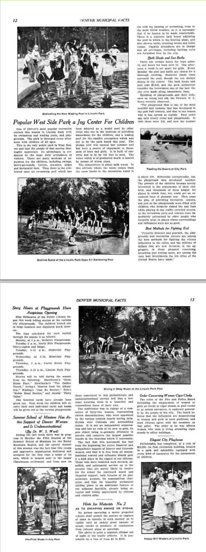 Popular West Side Park a Joy Center For Children. From Denver Municipal Facts 1911 July 15. Courtesy DPL Western History Collection C352.078883 D4373mu